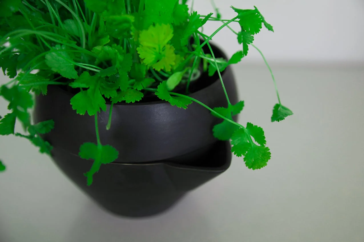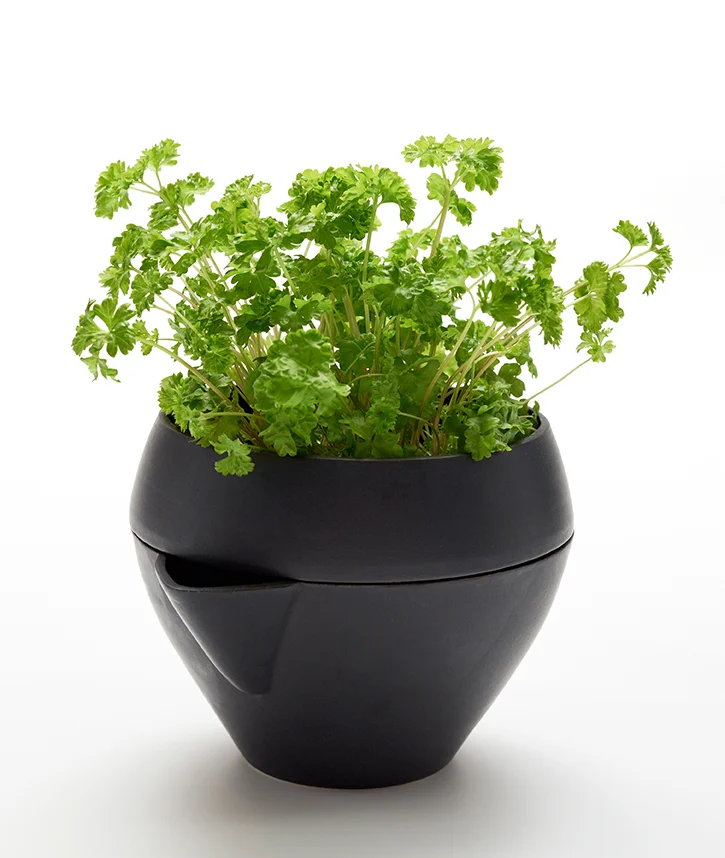 Herbs have long been grown for the purpose of flavouring foods. The herb plants themselves are also often aromatic and delightful to look at. Fresh herbs have a superior taste and smell to mass produced dried herbs from the supermarket. The flower pot Vein of Life has two parts. One contains the plant and the soil in which it is rooted. The other contains water which the plant can absorb. The Vein of Life can accommodate most small herbs. The Vein of Life is decorative and spices up life. The Vein of Life is modest, it does not infringe on the herb it accommodates and the plant will be in the forefront.
